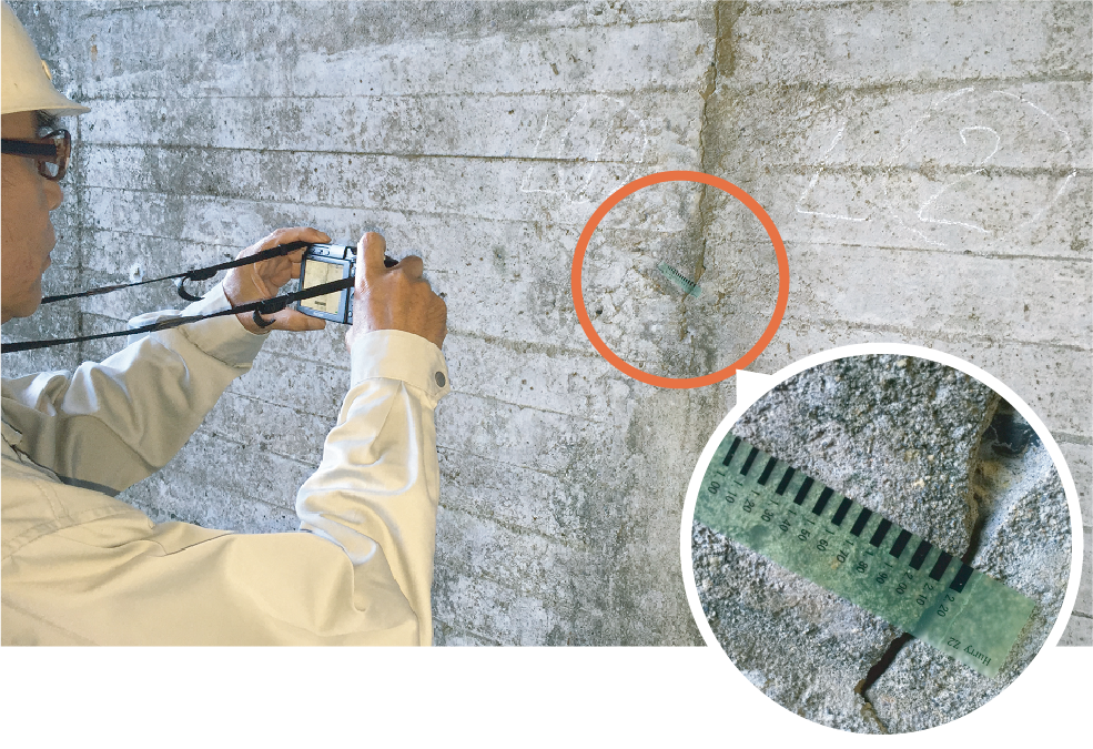 発注者が検査をする際にもその都度亀裂にクラックスケールを当てる作業が省略できるうえ、判定がしやすく時間の短縮につながるので、発注者にも喜ばれるのでは、と思います。