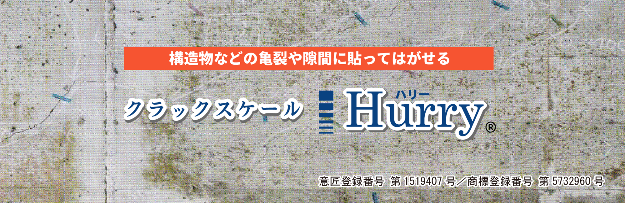 非破壊検査の現場から生まれたHurry®は、亀裂に直接貼り付けて測定できるクラックスケールとして、橋梁点検、トンネル点検、建築物調査、外壁調査、コンクリート構造物調査など、さまざまな現場で使用されています。
